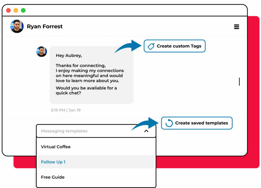 Don’t waste time going back and forth with your new connection. Book your meetings directly with Lead Scout Calendar and stop going around in circles playing “message tag” with your prospects.
